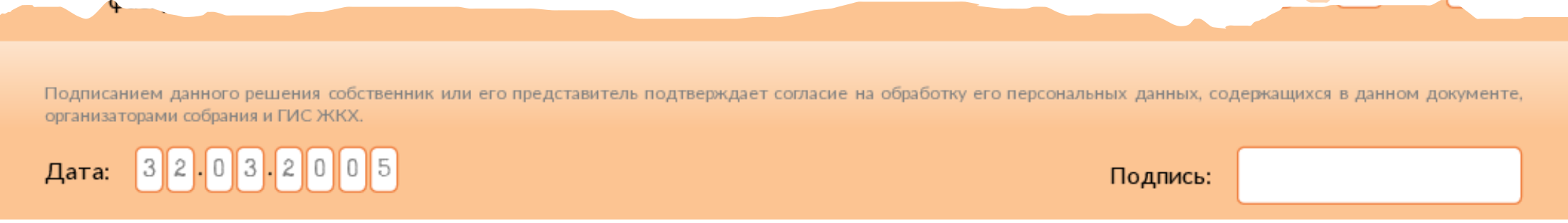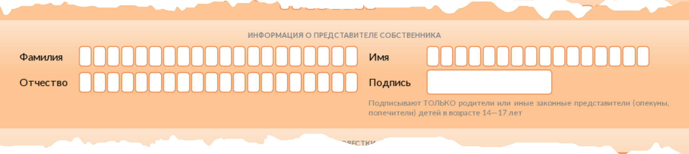 Если собственнику 14–17 лет — родитель/опекун вносит свои данные и ставит подпись, подтверждая согласие.