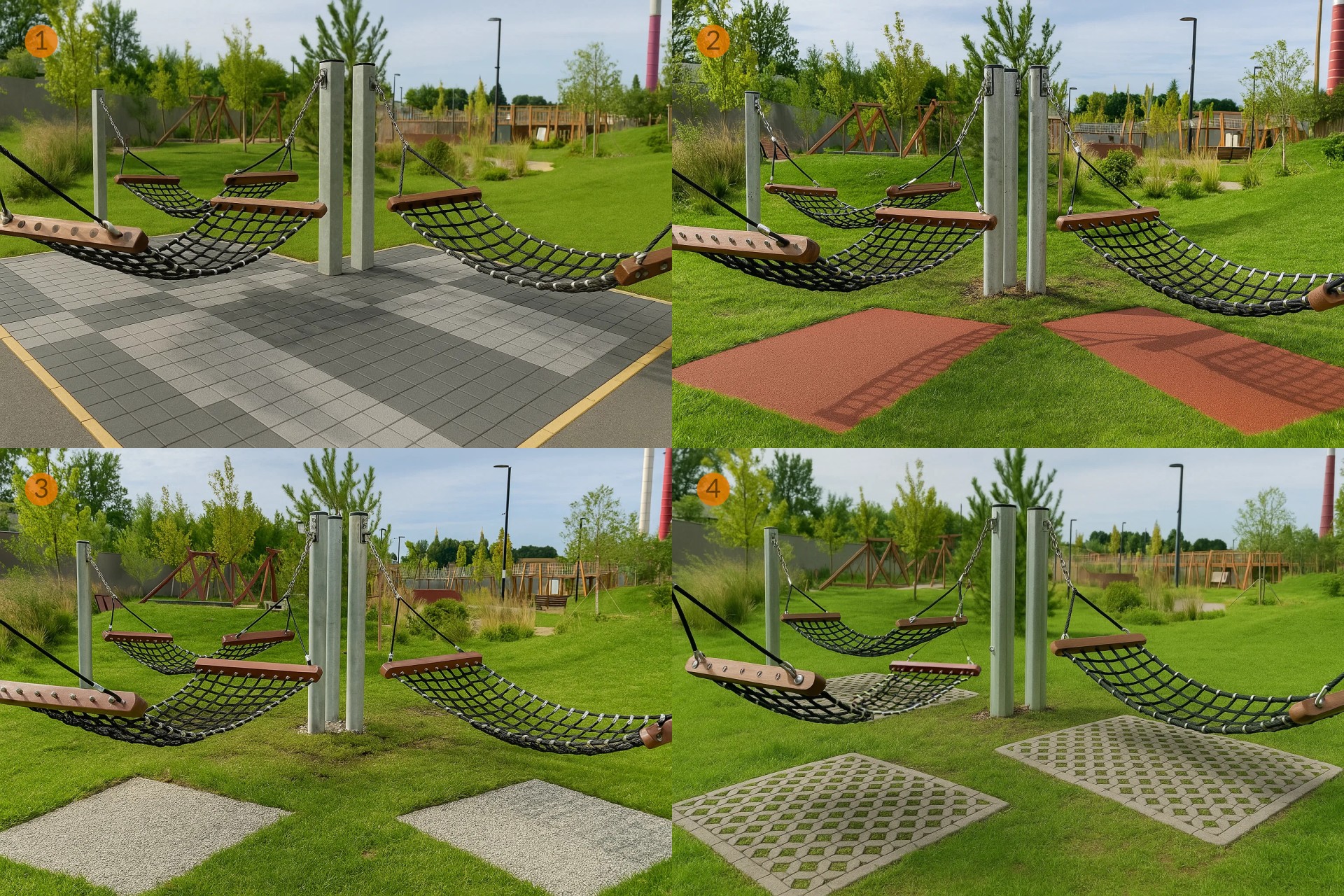 Таким образом, стала очевидной необходимость укладки покрытия под гамаками. Главные требования к такому покрытию — долговечность и износостойкость, устойчивость к погодным условиям, единство с архитектурной концепцией жилого комплекса.